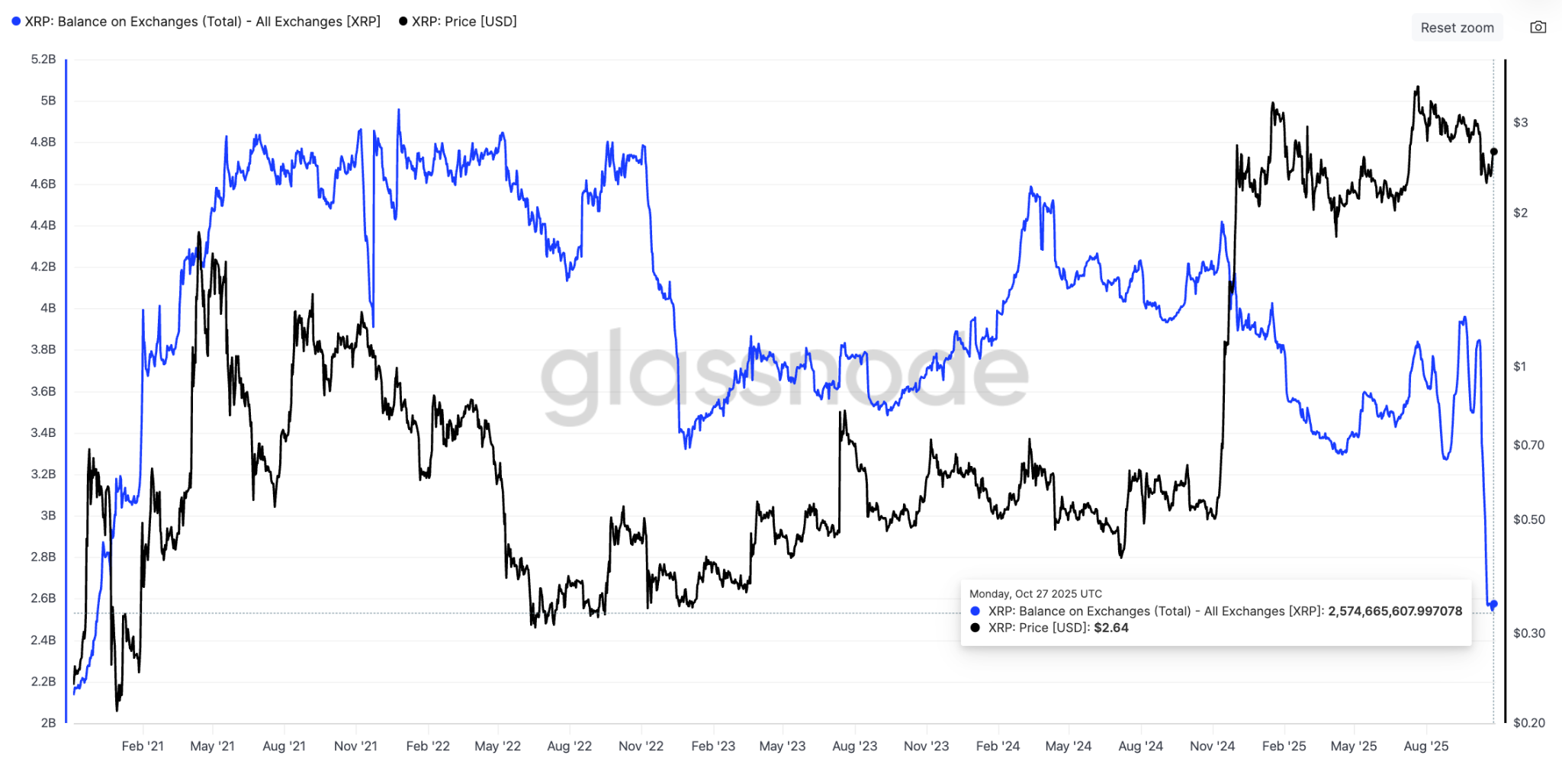 Glassnode verilerine göre borsalardaki XRP arzı son 30 günde önemli ölçüde azaldı.