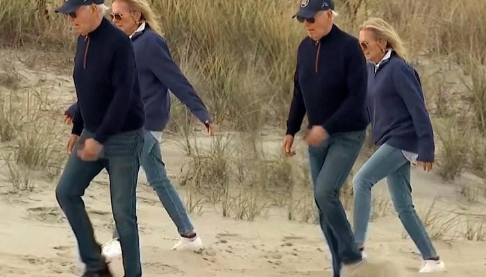 Joe Biden, Delaware'deki sahil evinde yürürken neredeyse düşüyordu.